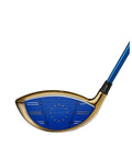 The Team Europe head features a bold contrast with blue on the sole and face and gold on the crown and bottom skirt. A map of Europe can be found on the sole, while silver and blue score lines accent the royal blue face. The Fujikura Airspeeder 50 shaft’s blue base color is elegantly offset by gold and white print.