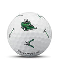TP5 pix™ Season Opener golf balls pay tribute to the crew that makes sure the host venue’s grounds are in pristine condition. The pix pattern on each ball showcases riding mowers, rakes, shovels and hedge trimmers. The packaging for each individual sleeve features a perfect mow stripe just like the fairways where no blade of grass is out of place. The dozen packaging reminds us of the white wood trim that’s found on the maintenance building with TaylorMade logos prominently featured.