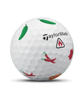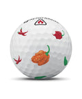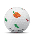 Nothing will add mouth-watering flavor to your game quite like TP5 and TP5x pix™ Peppers golf balls. Whether you’re partial to mild, even sweet peppers or prefer them so hot they turn your face red, TP5 and TP5x pix Peppers golf balls are adorned with a flavor for you. The number below the TaylorMade logo has been replaced with a fire-red sign warning you to not overdo it.